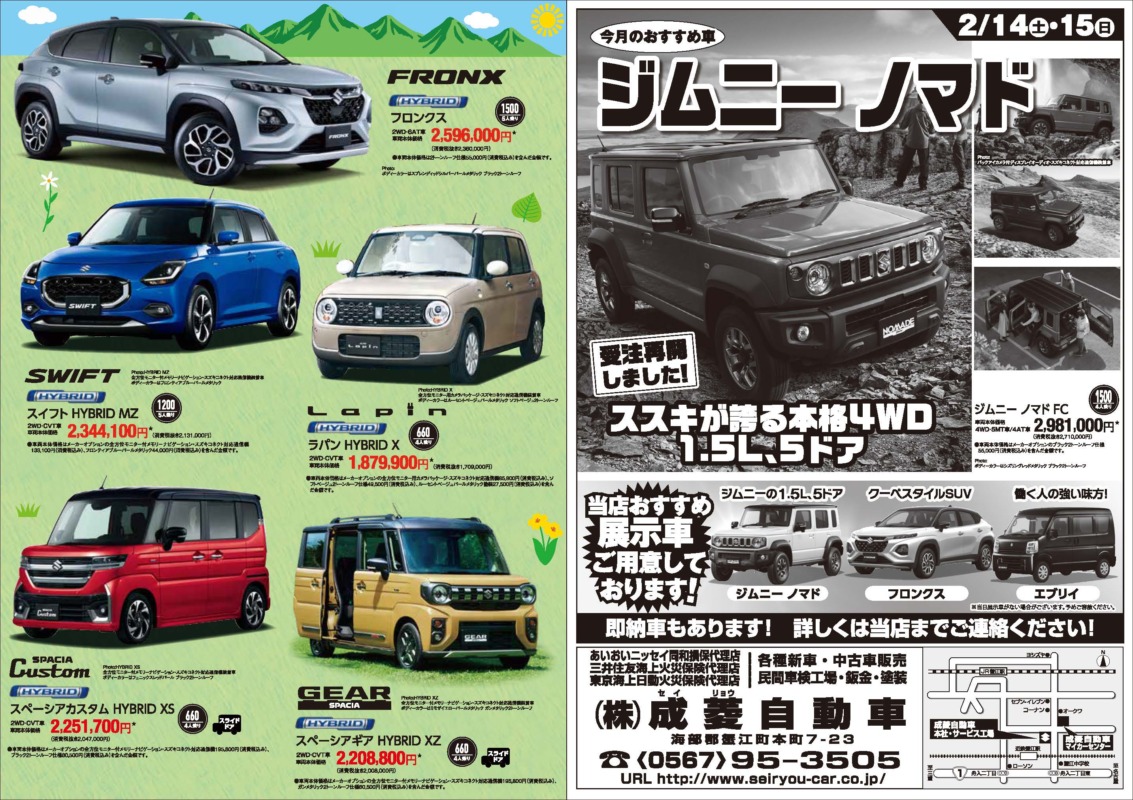 成菱自動車では、2月14日・15日の2日間、「スズキ大商談会」を開催します!